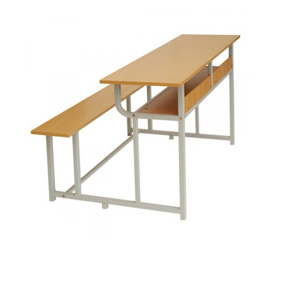 Bàn học sinh đôi liền ghế. Khung thép sơn tĩnh điện, mặt gỗ tự nhiên được phủ một lớp sơn trong suốt để bảo vệ bề mặt và giữ được mầu sắc nguyên bản của gỗ.