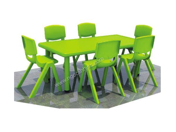 Bàn nhựa hình chữ nhật cho trẻ mầm non là sản phẩm hữu ích cho những nhóm lớp mầm non. Mẫu bàn hình chữ nhật kết hợp với 6 ghế giúp cho cô giáo mầm non có thể cho bé ăn, giúp bé học và quán xuyến nhóm trẻ một cách hiệu quả. Mặt bàn làm bằng nhựa HDPE nguyên sinh chất lượng vượt trội. Chân bàn bằng sắt chắc chắn sơn màu với bàn tạo nên sản phẩm có màu sắc ấn tượng.